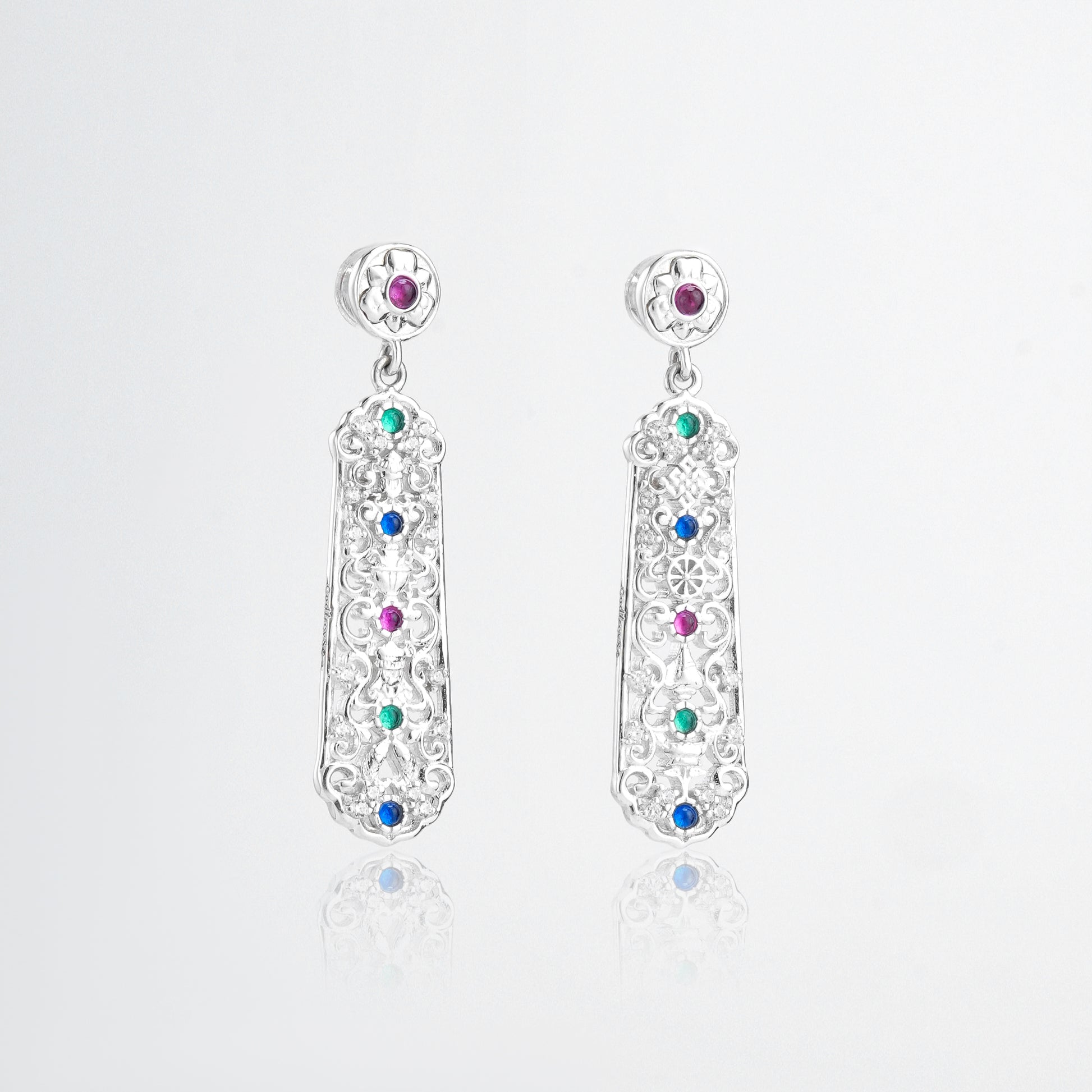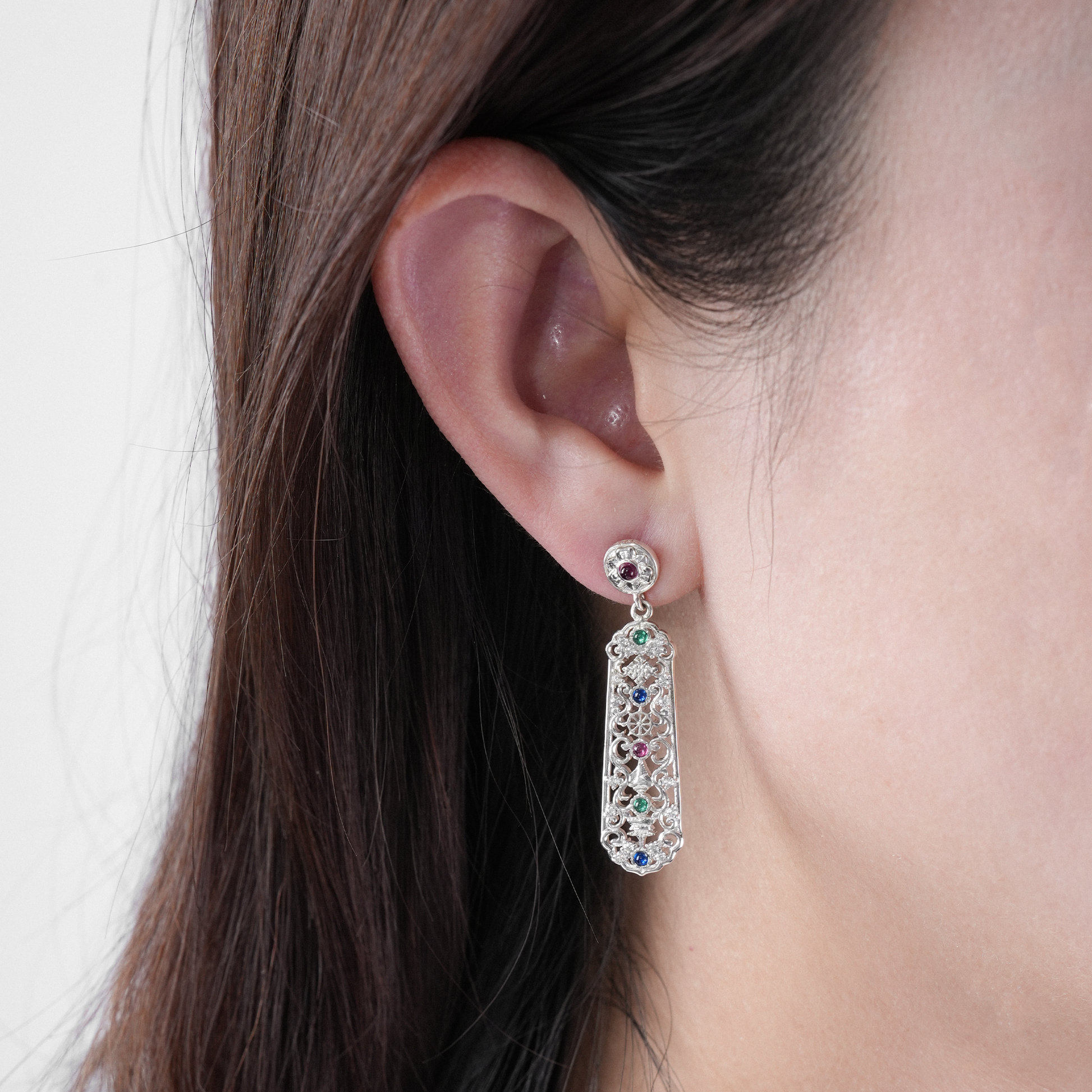 本作品は、仏教の八宝をインスピレーションに、中国の無形文化遺産に登録された伝統技法によって精緻に仕立てられた、SV925シルバー製のピアスでございます。