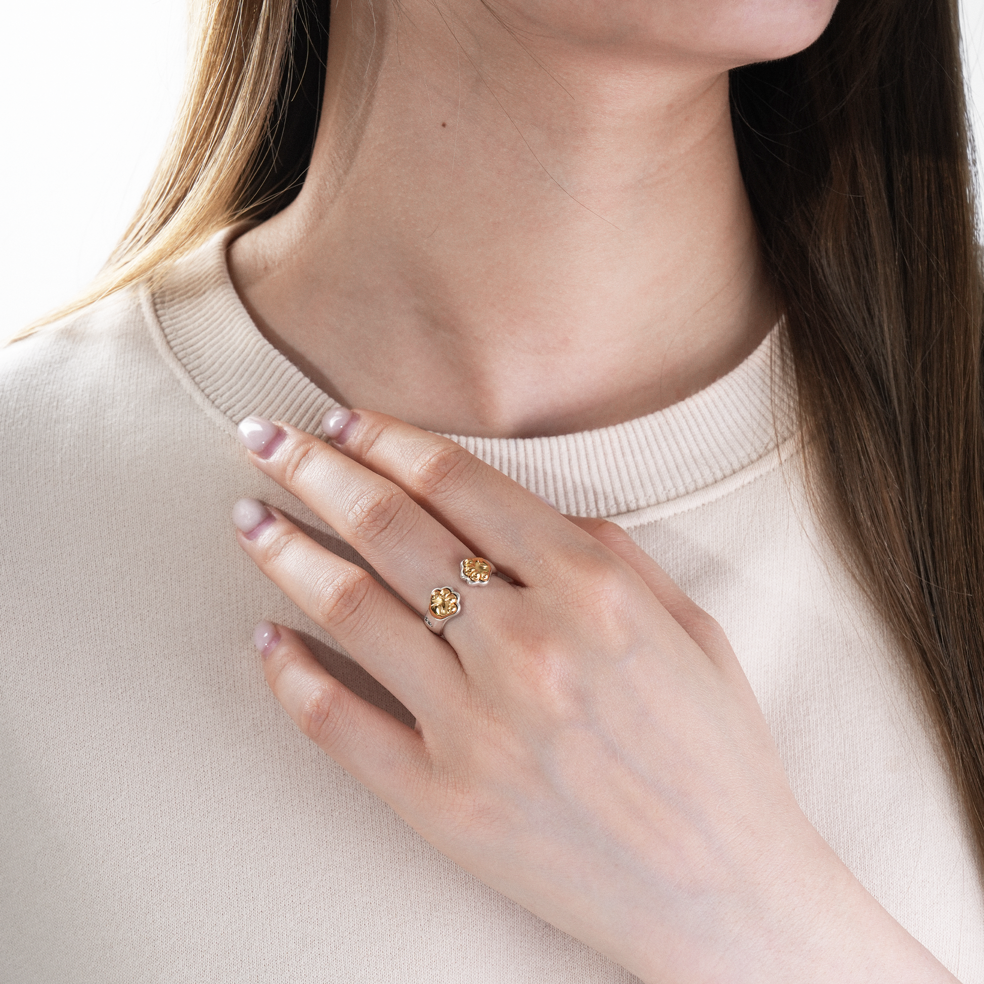 指先でそっと“ふみふみ”されているような幸福感を呼び起こすこのリングは、日常の癒しをカタチにしたジュエリーとして、見る人の心を和ませます。
